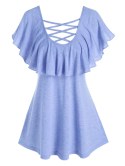 Lettuce Trim Square Collar Layered Asymmetrical Dress