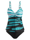 • Colorblock Mock Button Ruffle Tummy Control Bikini Swimwear